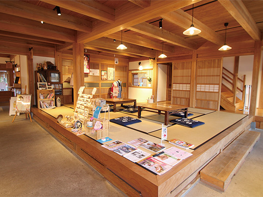 1階と2階の無料休憩スペースや授乳室、トイレを備え、軽食のテナントなどもある観光休憩施設です。建物右側から入れる中庭はペット同伴OK!