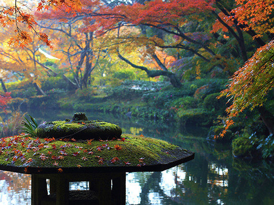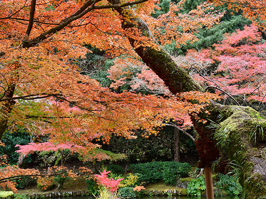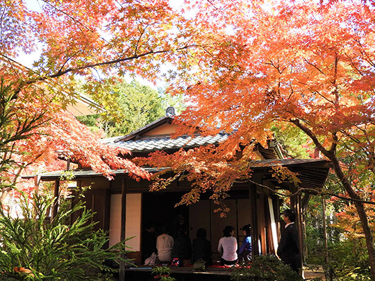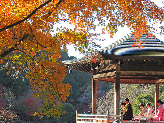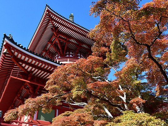 成田山新勝寺大本堂の奥に位置する成田山公園では、モミジ、クヌギ、ナラ、イチョウといった約250本の樹木が赤や黄色に色づきます。期間中の土・日・祝日には演奏会やお茶会が開催されます。