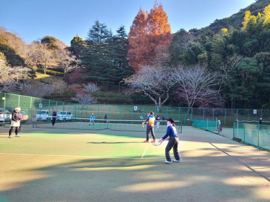 参加者の経験に応じて、2つに分かれて行うテニス教室です。コーチ多数で対応してくれます。(お弁当付き)