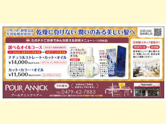 ○カット+カラー+オイル ¥11,500(税込¥12,650)