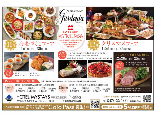 ホテルマイステイズプレミア成田 レストランガーデニア 11月 海老づくしフェア&12月 クリスマスフェア