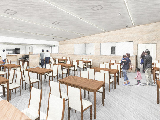 旧地域物産館の開放的な空間を活かした全面窓からは、利根川の景観が楽しめます。