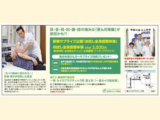 肩こり・腰痛専門施術院 一善 カイロプラクティック院 風土村 「一善カイロ施術室」