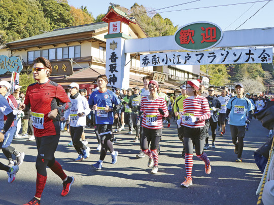 勝負の神宿る香取神宮を舞台に、小学生から一般まで男女年代別21部門で開催します。10Kmでは、日本遺産に認定された江戸情緒漂う歴史的な町並みを駆け抜けます。