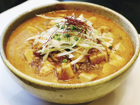 唐辛子+山椒の自家製ラー油を使った麻婆豆腐は麺を覆い隠すほどボリュームたっぷりで、食べ応え抜群。中太麺がとろとろ餡をしっかりまとって最後まで熱々のままいただけます。 ※辛さ調節可能