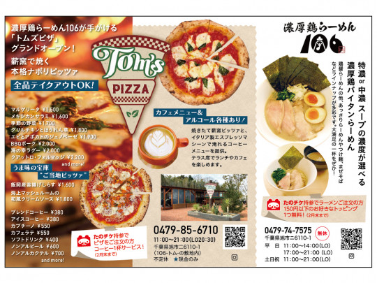 濃厚鶏らーめん106が手がける「トムズピザ」グランドオープン!