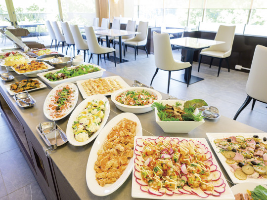 千葉県フレンチの巨匠 山口賢シェフによるフランス料理を中心に、中華、和食などをビュッフェ形式でお楽しみいただけます。毎朝仕入れるシェフ自身の農園で育てた地元野菜をふんだんに使った多彩なビュッフェを、リーズナブルに提供します。