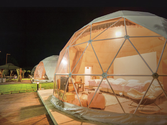 【グランピング】 エアコン完備で広々快適!手ぶらOKの炭火BBQ、愛犬との滞在など非日常感あふれる体験型ステイが楽しめます。 【ホテル】 通常よりも広い客室&ベッドサイズのラグジュアリー空間。和洋室・洋室・ゆったりメゾネット洋室など、様々なタイプの客室があります。