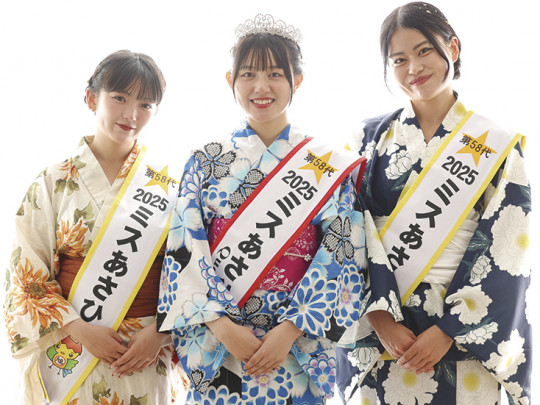 2025年7月に選出された第58代ミスあさひの3名。市内のイベントを中心にPR活動をしています。活動の様子をインスタグラムで発信中です。