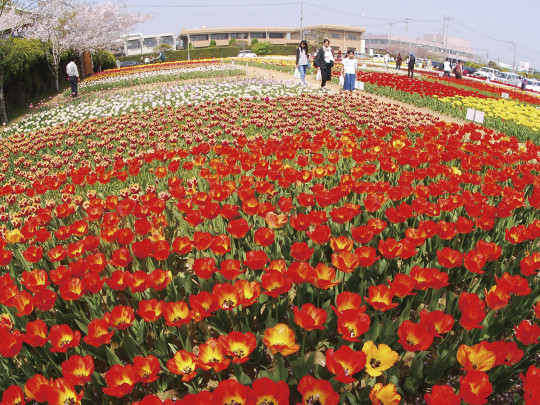 2,500㎡の花の広場にて6万本のチューリップが色鮮やかに咲き競い、春の訪れを運んできます。