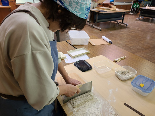 初めての方も経験者も大歓迎の「そば打ち体験」です。 地元の講師の方が優しく丁寧におしえてくれます!(4〜5人前)