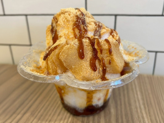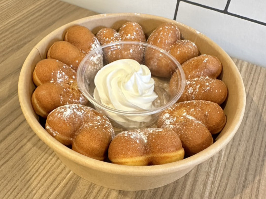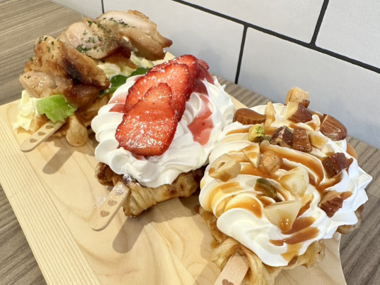 クロワッサン生地をワッフルメーカーで焼き上げ、外はサクッ、内側はもっちり。