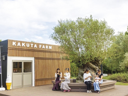 まず目を惹くのは、お店の前に堂々とそびえるオリーブの大木。その幹をぐるりと囲むウッドベンチが、カクタファームの特等席です。店名の通り同店はぶどう農園の直売所も兼ねていて、8月下旬からは大粒のシャインマスカットが並びます。その他のシーズンのお目当ては、なんといってもスイーツ!定番からブレイク中のスイーツまでバリエ豊富に揃っています。