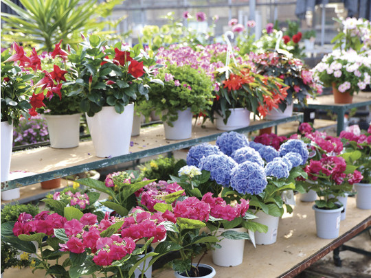 大小苗木、季節の草花や観葉植物、造園材料など。多彩で良質な花苗木を取り揃えています。