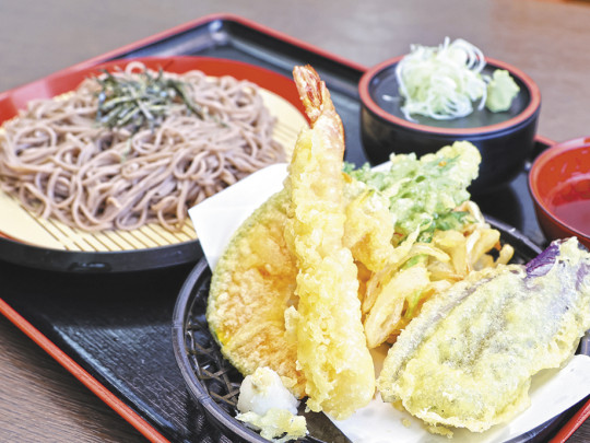カラッと揚がった海老、かき揚げ、旬野菜の天ぷら。その時期に収穫された地元野菜を使用しています。